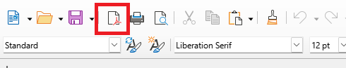 Direct in de menubalk vind je de makkelijkste manier om ODT naar PDF te converteren vanuit LibreOffice: direct naast het printpictogram staat een PDF-knop. Als je op de knop drukt, wordt het dialoogvenster voor opslaan geopend en hoef je alleen maar de opslaglocatie te selecteren. LibreOffice maakt dan een PDF-bestand dat de hele lay-out bevat. Je kunt ook de sneltoets CTRL + SHIFT + E gebruiken. Dezelfde procedure geldt voor OpenOffice.